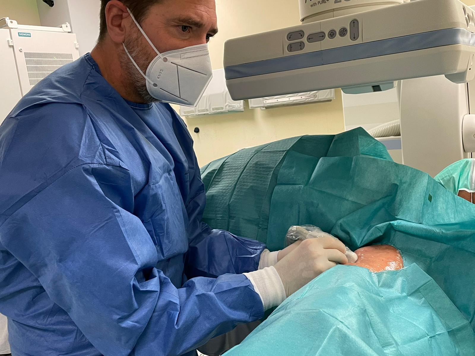 Esta foto es real y muestra una situación muy desafiante. El paciente recibe un catéter venoso central insertado periféricamente, una técnica con la que los propios médicos también buscan ayuda con gusto. En Alemania, esta tecnología se aplica incluso en el hogar a casa, por ejemplo, en pacientes que están completamente inmóviles.